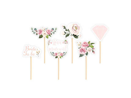 - Cupcake picks with a floral motif, the perfect decoration for a cake or muffins for a bachelorette party.