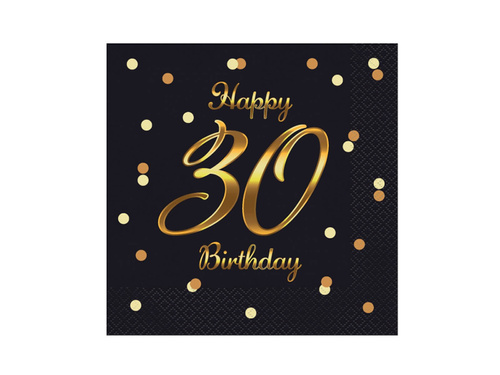 - Paper napkins in black with gold lettering Happy 30th Birthday. Perfect for your 30th birthday.