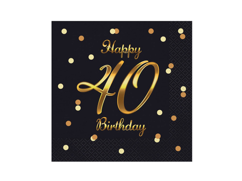 - Paper napkins in black with gold lettering Happy 40th Birthday. Perfect for a fortieth birthday.