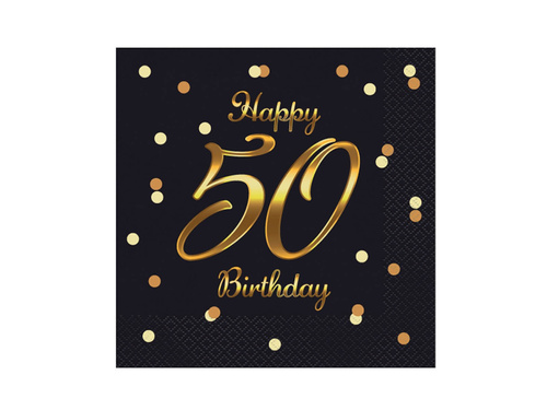 - Paper napkins in black with gold lettering Happy 50 Birthday. Perfect for a fiftieth birthday party.