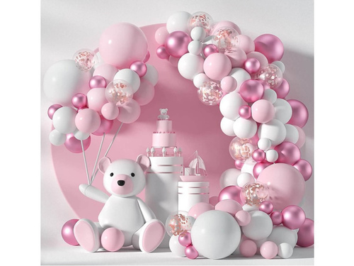 - Balloon garland in pink and white is the perfect decoration for a birthday party, baby shower or a girl's baptism. It will also work well as a photo wall.