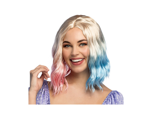 - Peruka Jenny blond z różowymi i niebieskimi końcówkami.
