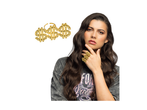 - Pierścionek z potrójnym motywem dolara, średnica 2 cm.