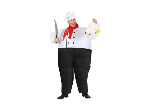 - W komplecie dmuchanego stroju kucharza znajdziesz: dmuchany kostium, szalik oraz czapkę.