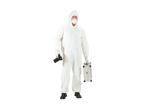 - Zestaw zawiera: kombinezon z kapturem, maskę oraz rękawiczki.