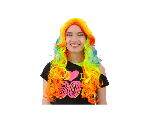 - Peruka z długimi falowanymi włosami w kolorze wielobarwnym.
