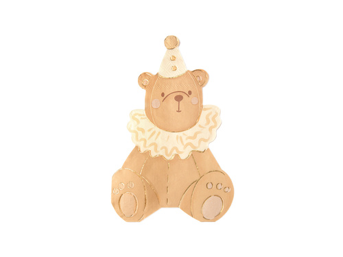 • Serwetki papierowe w kształcie brązowego Misia w urodzinowej czapce.