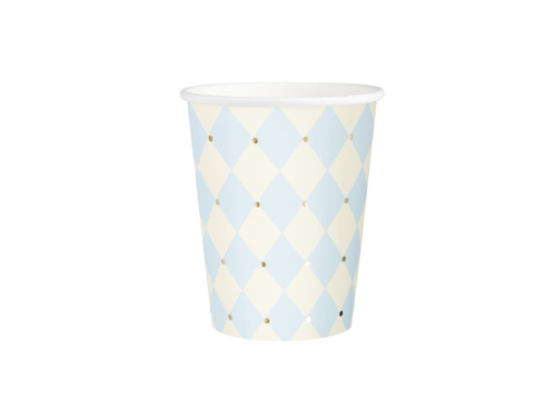 Kubeczki papierowe w romby - niebieskie - 220 ml - 6 szt.