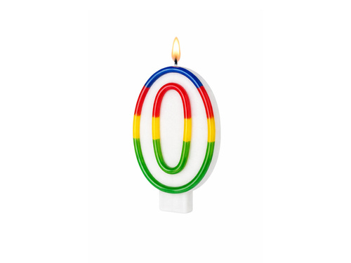 - Biała świeczka cyferka 0 "zero" z kolorową obwódką.