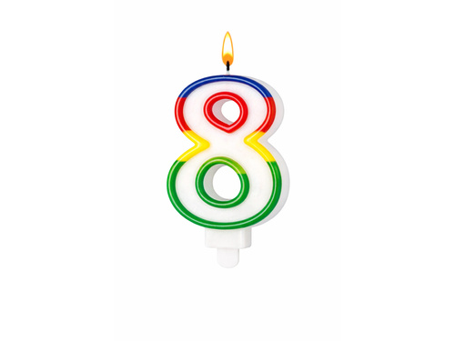 Świeczka cyferka z kolorową obwódką - cyfra 8 - 8 cm -1 szt.