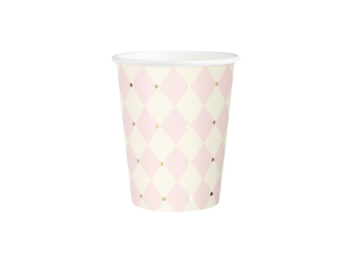 Kubeczki papierowe w romby - różowe - 220 ml - 6 szt.