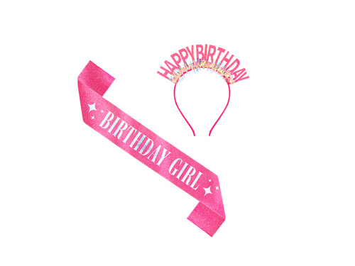 - Zestaw opaską oraz szarfą w kolorze różowym.