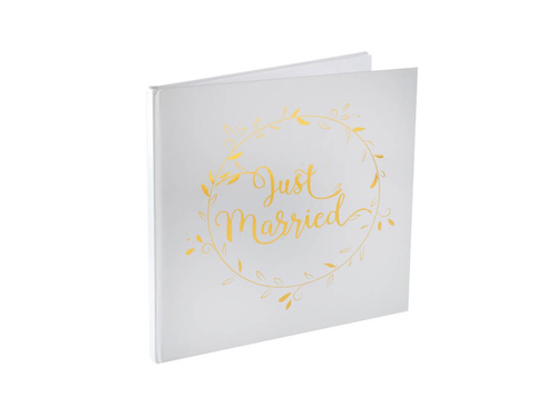 - Księga Gości w kolorze białym ze złotym nadrukiem Just Married.