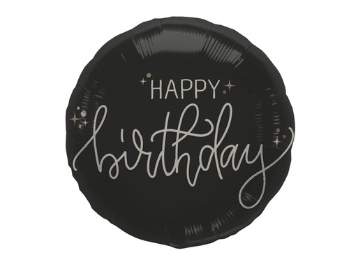 Balon foliowy Happy Birthday czarny - 45 cm - 1 szt.