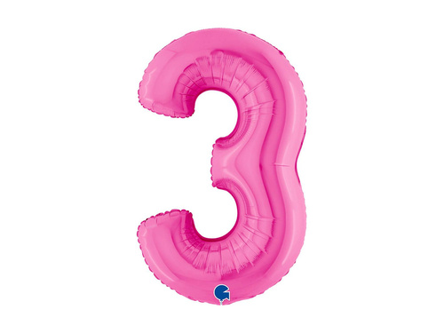 Balon foliowy cyfra 3 fuksjowy - 40" - 1 szt.