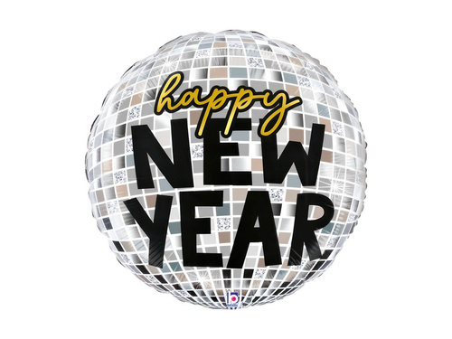 Balon foliowy Happy New Year kula Disco - 24" - 1 szt.