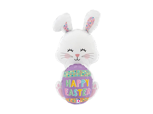 - Balon foliowy kształt zajączek Wielkanocny z napisem Happy Easter.