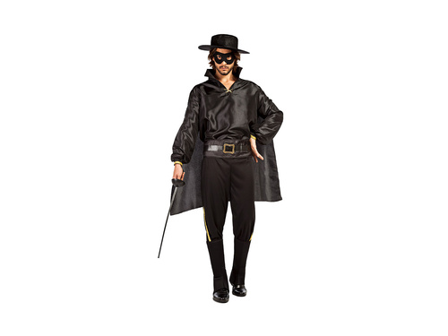 - Zawartość: kapelusz, maska, koszula z peleryną, pas, spodnie, nakładki na buty.