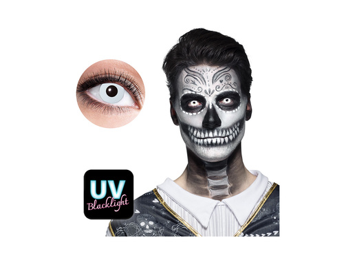 - Szkła kontaktowe w kolorze białym z efektem UV. Okres noszenia: 1 miesiąc od otwarcia opakowania.