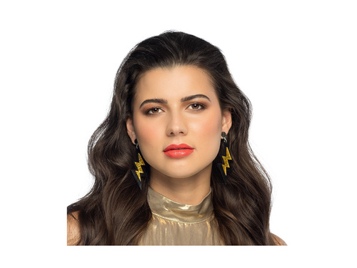 - Kolczyki z długą zawieszką 10 × 2 cm, na klipsach.