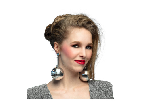 - Kolczyki dyskotekowe o średnicy 6 cm, na klipsach.
