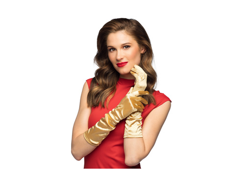 - Para eleganckich rękawiczek do łokcia w kolorze złotym, długość 38 cm.