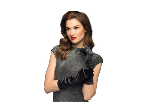 - Para satynowych rękawiczek do łokcia w kolorze czarnym, długość 38 cm.