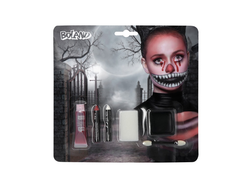 - Zestaw do makijażu z motywem kota. Zawiera sztuczną krew, farby tłuste, kredki do twarzy, aplikator i gąbkę.
