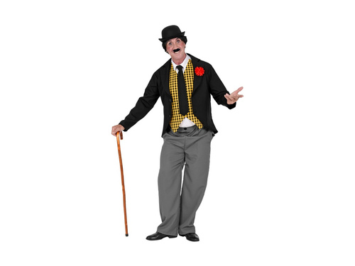 - W zestawie znajduje się: frak z broszką w kształcie kwiatu, atrapa koszuli z kamizelką, spodnie oraz krawat.