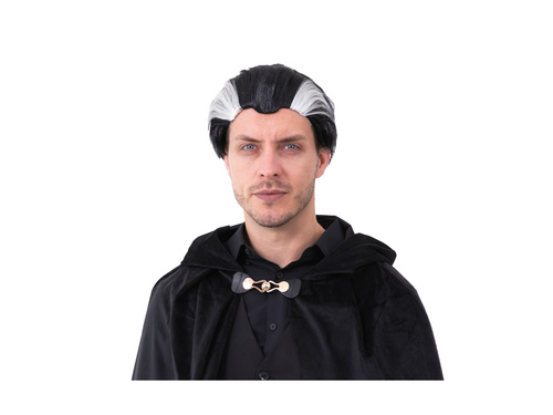 - Peruka wampir dracula w kolorze czarnym z białymi pasemkami.