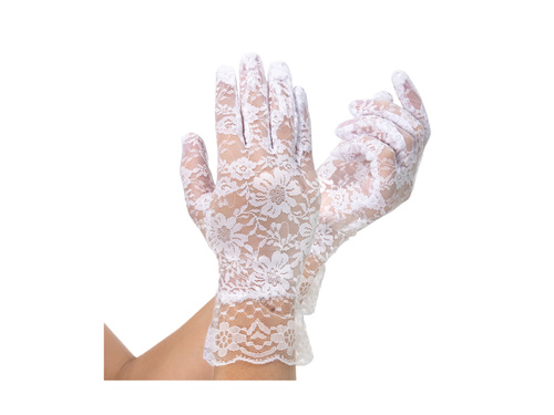 - Białe koronkowe rękawiczki dla kobiet.