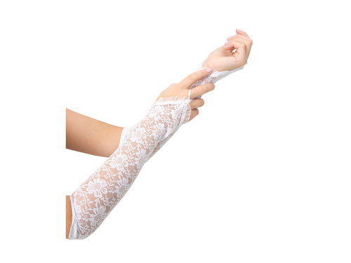 Białe koronkowe rękawiczki na palec - 40 cm - 1 para