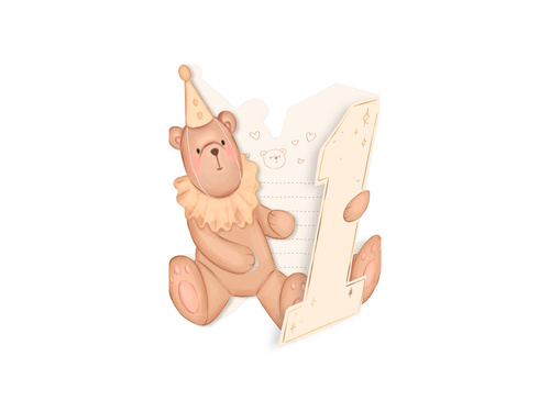 Zaproszenie na roczek Miś - 12 cm x 17,5 cm - 6 szt.
