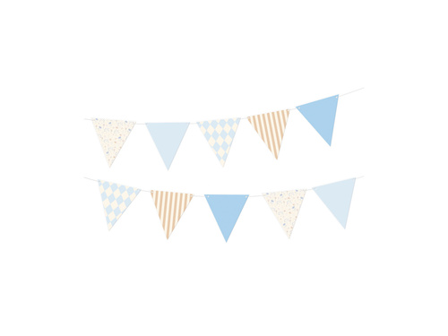 - Baner flagi trójkątne w pastelowych odcieniach i błękitach.